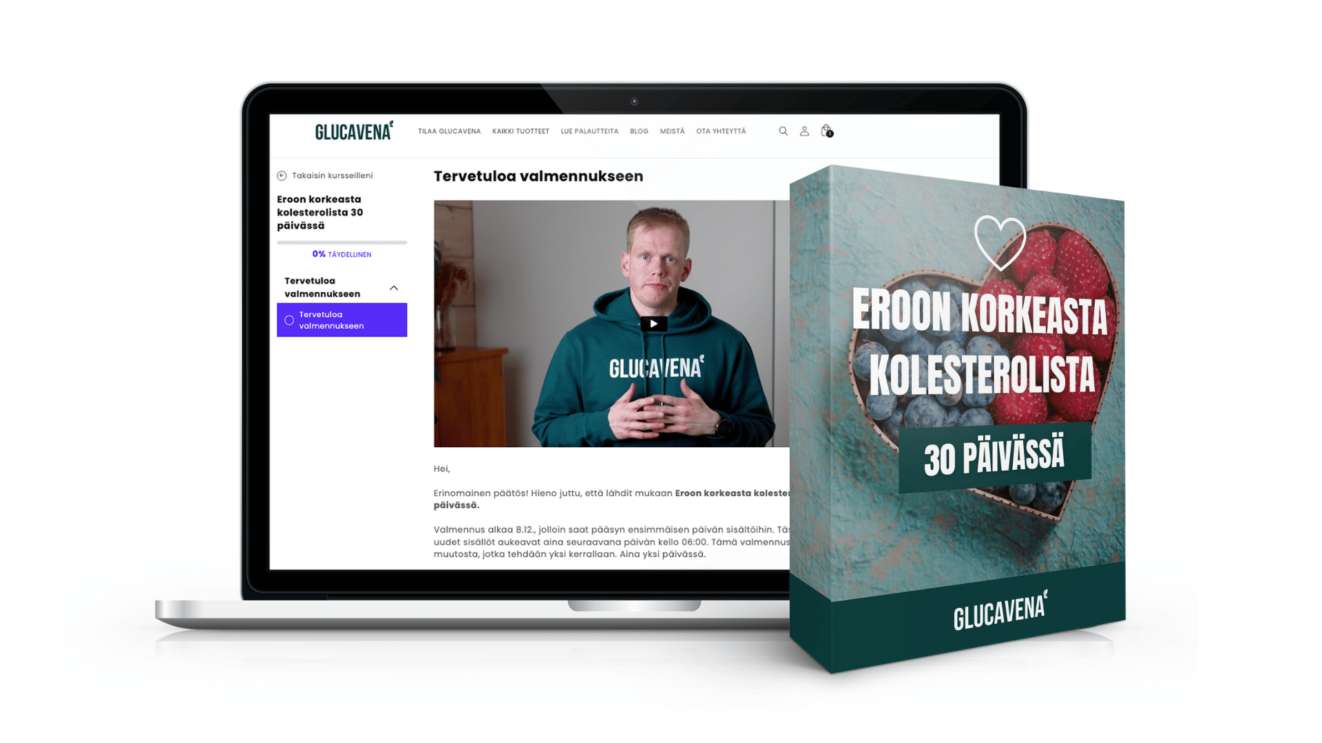 Black Weekin kunniaksi saat 5 pussia Glucavenaa edulliseen 99€ :n hintaan ja ilmaisen toimituksen. Lisäksi 200 nopeinta saavat kaupan päälle uuden Eroon korkeasta kolesterolista -verkkovalmennuksen, jonka arvo on 100€.